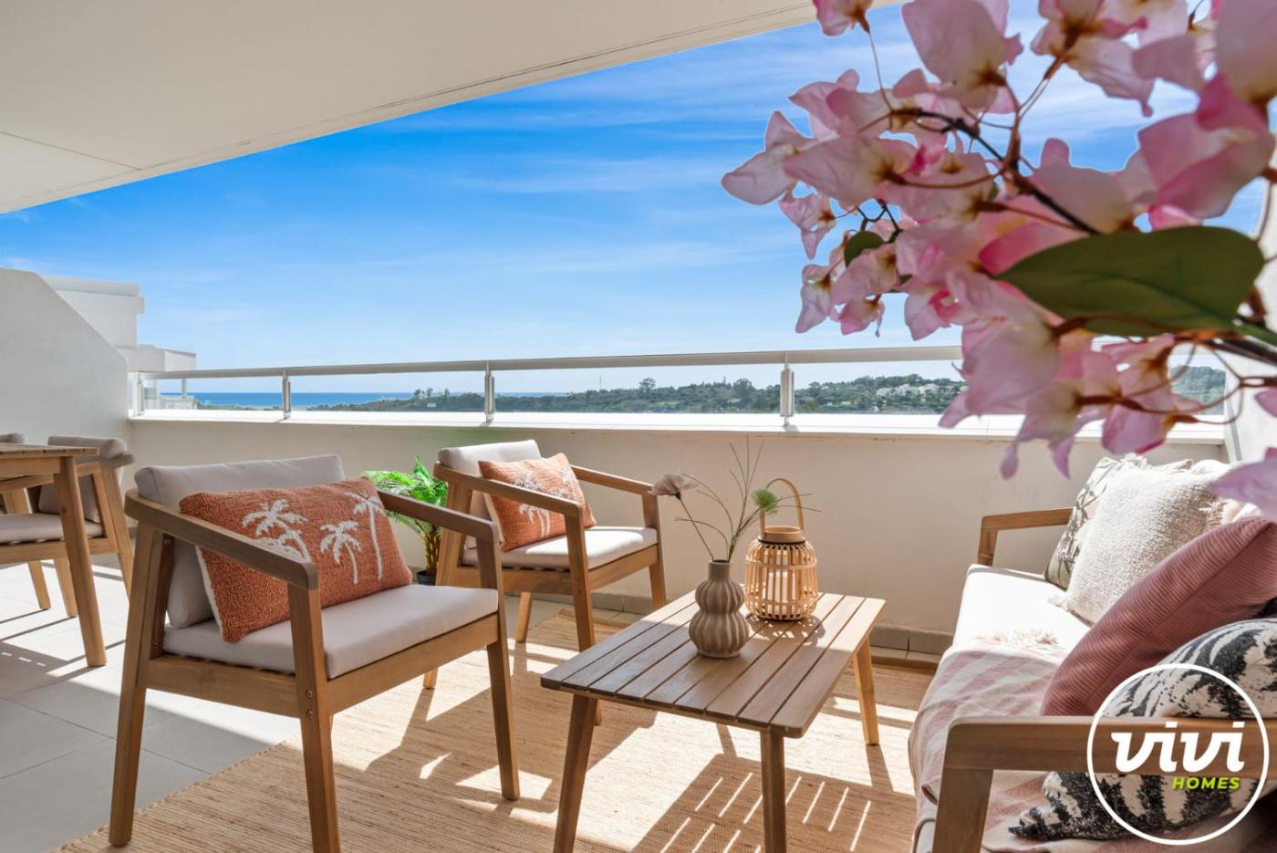 ViVi Homes - Casa di Sunshine, que tiene piscina al aire libre y vistas al mar, se encuentra en Estepona. El alojamiento, que está a 2,5 km de Playa de Guadalmansa, dispone de terraza y parking privado gratis.