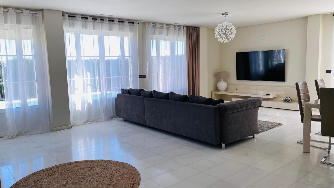 Villa. Guests will have a special experience as this villa provides a private pool, a hot tub and a fireplace. This spacious villa includes 4 bedrooms, kitchen, a terrace and 4 bathrooms with a bath. Guests can make meals in the kitchen that has a stovetop, a refrigerator, a dishwasher and kitchenware. The air-conditioned villa offers a flat-screen TV, a washing machine, a dressing room, a sofa as well as sea views. The unit has 5 beds.
