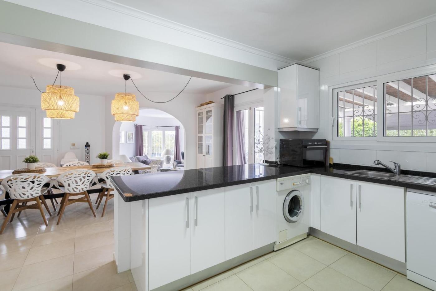 Esta villa de 4 dormitorios tiene aire acondicionado y ofrece 3 baños con ducha, bañera y secador de pelo. La cocina está equipada con nevera, lavavajillas y horno, además de cafetera y hervidor.