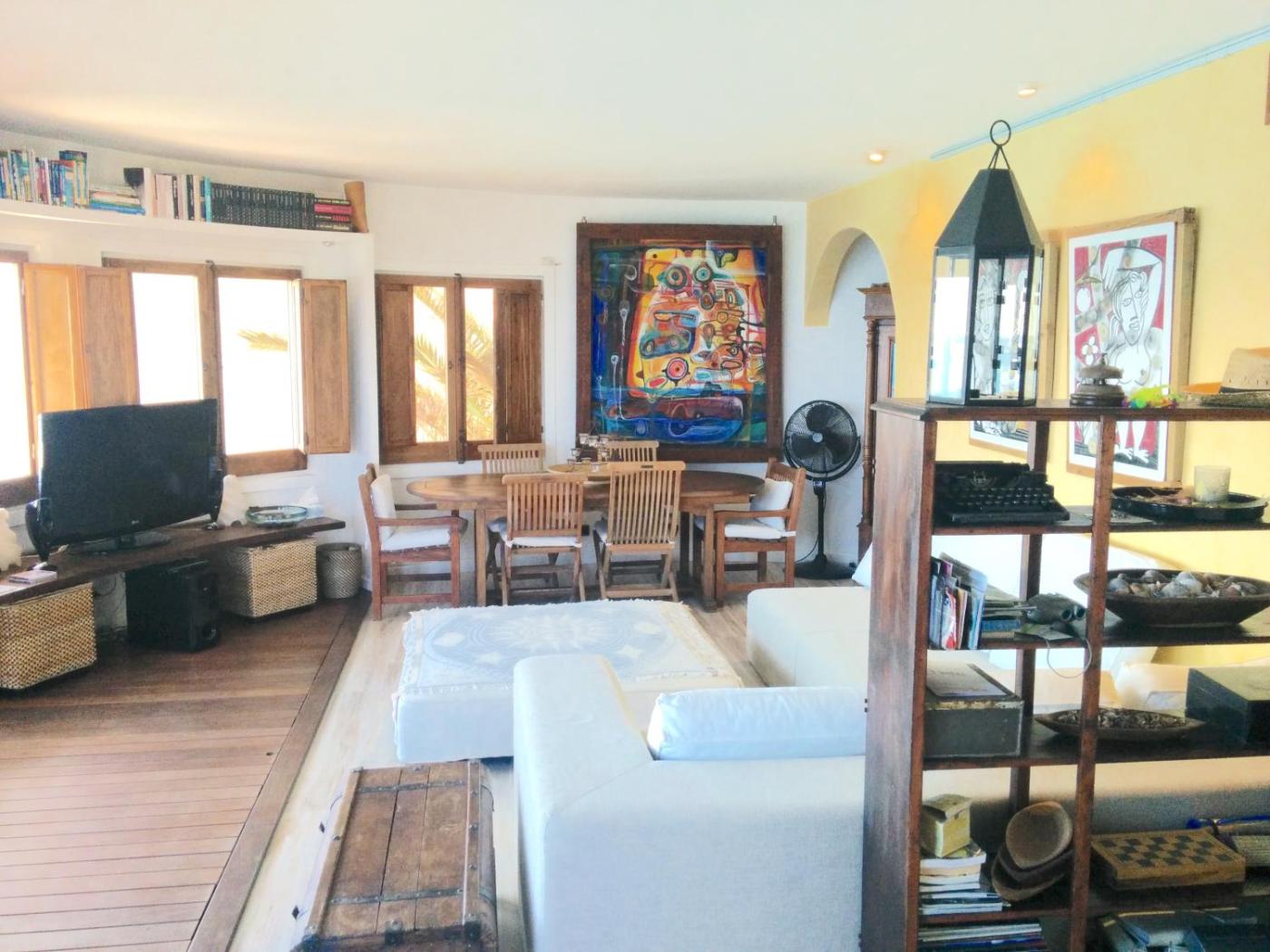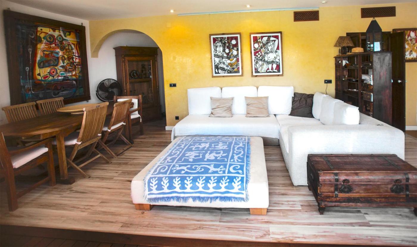 Apartamento Dúplex. Featuring a private balcony with impressive sea views, this seafront duplex apartment offers a communal outdoor pool, free WiFi and free parking. The apartment has air conditioning and a fan. In the living room there is a sofa and flat-screen TV with satellite channels, as well as a CD and DVD player. You will find a shower and hairdryer in the bathroom, and there is also a guest bathroom. The well-equipped kitchen includes a washing machine, dishwasher and microwave.